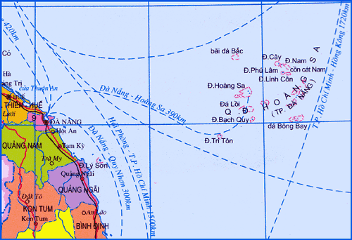 - Khoảng cách từ Hoàng Sa tới đất liền lục địa Trung Hoa còn xa hơn rất nhiều, tối thiểu là 235 hải lý.