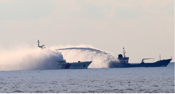 Tàu hải giám TQ bao vây và xịt vòi rồng vào tàu kiểm ngư VN hôm 28/5. Ảnh: Hoàng Sang