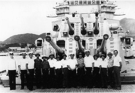Cán bộ vùng 4 Hải quân chụp ảnh lưu niệm với sĩ quan thủy thủ tàu khu trục Hải quân Nga tại Cảng Cam Ranh (năm 1982)