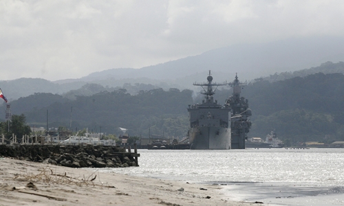 Các tàu chiến Mỹ ở vịnh Subic, thành phố Olongapo, phía bắc Manila, hôm 14/10/2014. Ảnh: Reuters.