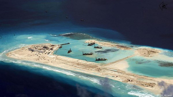 Theo ảnh vệ tinh của Hoa Kỳ, chỉ trong vòng 18 tháng, TQ đã bồi đắp các bãi san hô từ 8 ha lên 800 ha, một việc làm gây ảnh hưởng nghiêm trọng đến hòa bình, an ninh, tự do hàng hải của cả thế giới. Đầu tư cho công trình TQ gọi là “xây vạn lý trường thành bằng cát trên biển” thuộc chủ quyền của VN trị giá trên 10 tỷ USD, TQ không chỉ ngang nhiên thực hiện chiến lược lâu dài mà còn hủy hoại tàn bạo môi trường và môi sinh trên biển Đông.