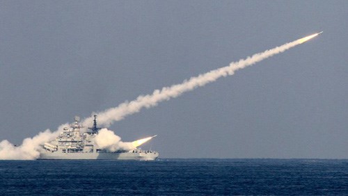 Tàu chiến Trung Quốc phóng tên lửa trong một cuộc tập trận ở Biển Hoa Đông – Ảnh: Reuters