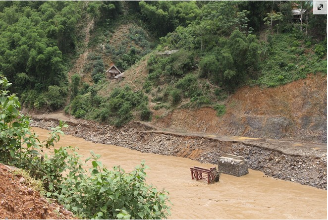 “9h sáng, nước lũ ngầu đục, cây cầu rung lên bần bật. Nhiều người la hét đu người cố giằng kéo sợi dây cáp nhằm cứu khối tài sản lớn nhưng mọi nỗ lực đều bất thành”, một người dân địa phương cho hay.