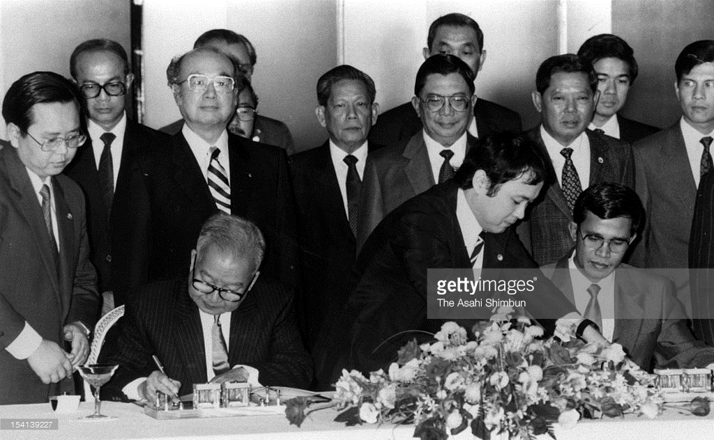 Sihanouk và Hunxen ký Thông cáo chung Tokyo năm 1990