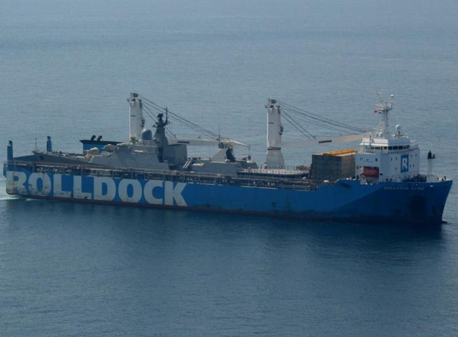 Tàu vận tải hạng nặng Rolldock Star Hà Lan đang chở tàu hộ vệ lớp Gepard 3.9 thứ ba về Việt Nam. Ảnh: Poder Naval.