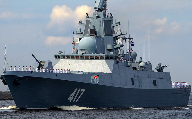 Tuần dương hạm cỡ nhỏ Đô đốc Gorshkov tham gia kỷ niệm Ngày Hải quân Nga tại Kronstadt. (Ảnh: Sputnik)