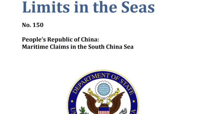 Báo cáo nghiên cứu dài 47 trang, do Cục Hải dương và Khoa học môi trường Quốc tế (OES) thuộc Bộ Ngoại giao Mỹ chịu trách nhiệm soạn thảo có tiêu đề “Limits in the Seas” (Giới hạn trên biển), là phiên bản cập nhật của cùng một công trình nghiên cứu năm 2014. Báo cáo chỉ ra rằng Trung Quốc tuyên bố chủ quyền đối với hơn 100 hòn đảo và bãi đá ngầm chìm dưới mực nước biển của Biển Đông vượt qua ranh giới lãnh hải hợp pháp của bất kỳ quốc gia nào. Ngoài ra, Trung Quốc tuyên bố rằng họ có cái gọi là “quyền lịch sử” ở Biển Đông, nhưng không đưa ra được cơ sở pháp lý hoặc bằng chứng cụ thể.