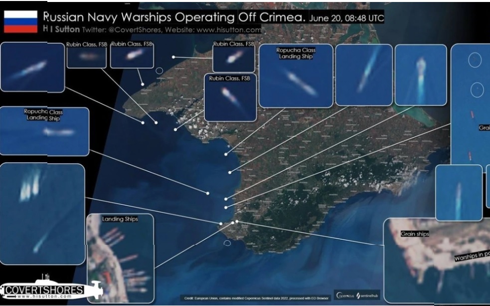 Theo đó, tàu vũ trụ Sentinel-2 đã ghi lại hoạt động cực cao của các tàu chiến ở ngoài khơi bán đảo Crimea.