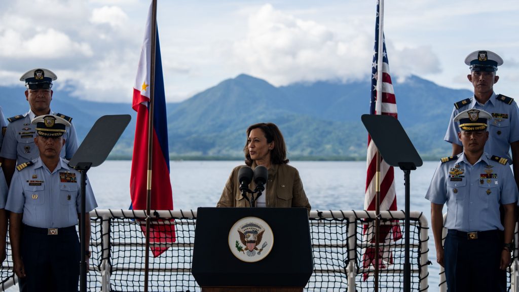 Khi đến thăm làng chài Tagburos và lực lượng tuần duyên ở đảo Palawan, phía Tây Philippines, gần Trường Sa, Phó Tổng thống Mỹ tuyên bố Wahsington cam kết sát cánh với Manila trước những hành vi “hù dọa và chèn ép” ở Biển Đông. Tại đây, bà Harris đã nói chuyện với các nhà lãnh đạo và ngư dân địa phương, những người mà sinh kế của họ đang bị đe dọa bởi biến đổi khí hậu và hoạt động đánh bắt bất hợp pháp và không được báo cáo. Trong một phát biểu không nêu đích ranh song rõ ràng nhằm vào Trung Quốc, bà Harris đã mạnh mẽ lên án “tàu nước ngoài thâm nhập hải phận Philippines, đánh bắt bất hợp pháp các nguồn hải sản, uy hiếp ngư dân địa phương, trong khi chính họ (những tàu cá Trung Quốc) làm ô nhiễm đại dương và hủy hoại môi trường biển”.