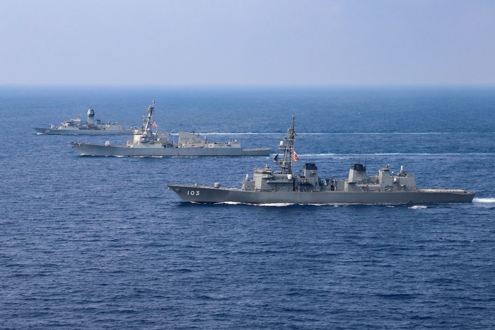 Ngày 7/2 và 8/2/2024, các tàu chiến của Hoa Kỳ, Úc và Nhật Bản đã tổ chức các cuộc tập trận chung ở Biển Đông bất chấp việc Bắc Kinh phản đối các hoạt động của hải quân nước ngoài trong khu vực. Trong một thông báo, Hạm đội 7 của Hoa Kỳ cho biết tàu khu trục mang phi đạn dẫn đường USS John Finn (DDG-113) và tàu chiến USS Gabrielle Giffords (LCS-10) của Hải quân Hoa Kỳ đã tập trận với tàu khu trục JS Sazanami (DD-113) của Lực lượng phòng vệ trên biển Nhật Bản (JMSDF) và tàu khu trục RAN HMAS Warramunga (FFH152) của Hải quân Hoàng gia Úc.