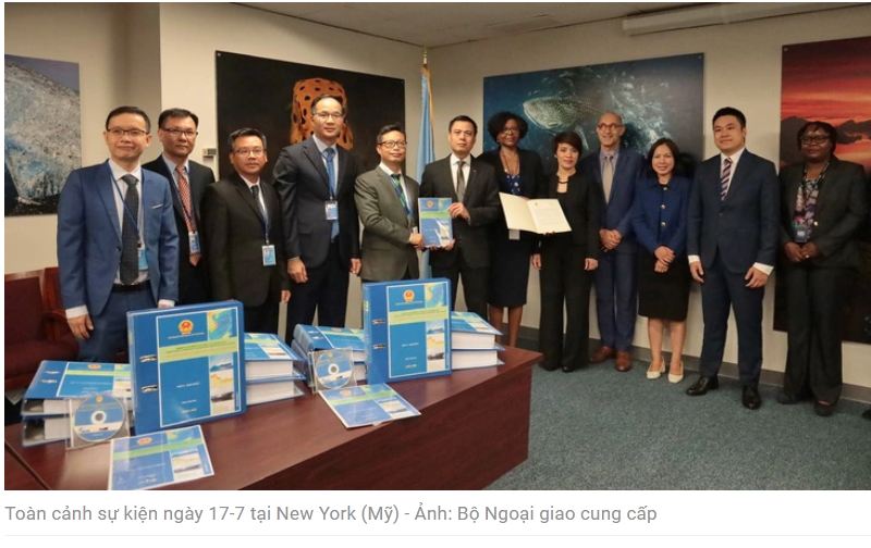Ngày 17-7 giờ địa phương (rạng sáng 18-7 theo giờ Việt Nam), đại diện Bộ Ngoại giao Việt Nam đã trao cho Ủy ban Ranh giới thềm lục địa Liên Hiệp Quốc (CLCS) hồ sơ đệ trình Ranh giới thềm lục địa mở rộng ngoài 200 hải lý của Việt Nam tại khu vực giữa Biển Đông (VNM‑C).