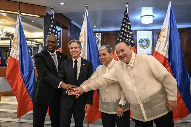 Đại diện của Mỹ là ông Blinken và Bộ trưởng Quốc phòng Lloyd Austin, còn phía chủ nhà là Ngoại trưởng Enrique Manalo và Bộ trưởng Quốc phòng Gilberto Teodoro, theo Reuters hôm 30.7.