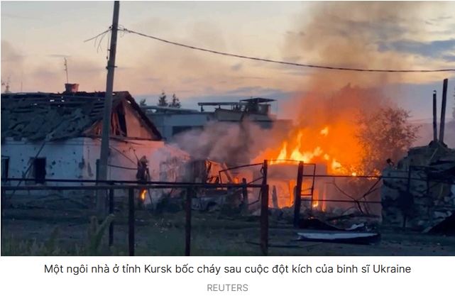 Bộ Quốc phòng Nga hôm qua tuyên bố lực lượng của họ “tiếp tục đẩy lùi” nỗ lực đột nhập tỉnh Kursk của lực lượng Ukraine, theo Reuters. Trước đó, ông Apti Alaudinov, chỉ huy đơn vị Chechnya Akhmat chiến đấu cho Nga, nói trong một video rằng tính đến ngày 7.8, lực lượng Ukraine đã thọc sâu đến 10 km tính từ biên giới. Video đó do kênh truyền thông độc lập Agentstvo ở Nga công bố ngày 8.8, theo The Kyiv Independent.