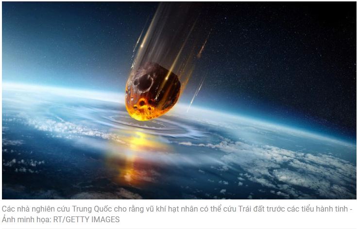 Theo Đài RT hôm 28-8, các nhà khoa học từ chương trình thám hiểm không gian sâu của Trung Quốc mới đây cho rằng vũ khí hạt nhân có thể là phương tiện tốt nhất để bảo vệ Trái đất khỏi các tiểu hành tinh.