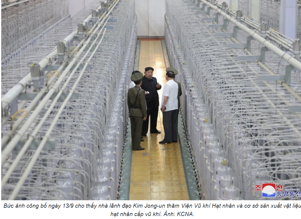 Hãng thông tấn Triều Tiên KCNA ngày 13/9 đưa tin, nhà lãnh đạo Triều Tiên Kim Jong-un đã đến thăm phòng điều khiển của một cơ sở làm giàu urani để tìm hiểu về hoạt động của các dây chuyền sản xuất, đồng thời giám sát cuộc thử nghiệm phóng tên lửa đa nòng 600mm mới.