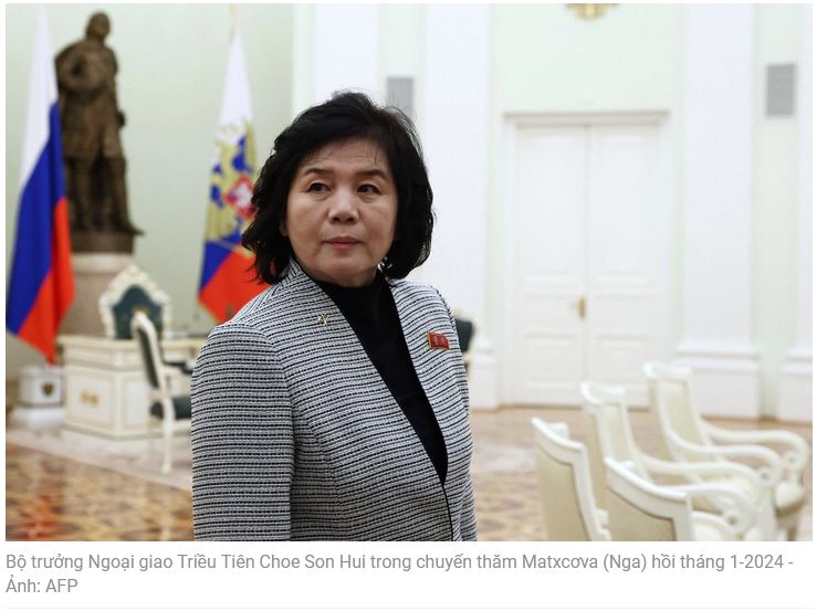 Bộ trưởng Ngoại giao Triều Tiên Choe Son Hui đã bay đến Nga để dự Diễn đàn Phụ nữ Á – Âu lần thứ 4 và Diễn đàn Phụ nữ BRICS tại TP St. Petersburg.