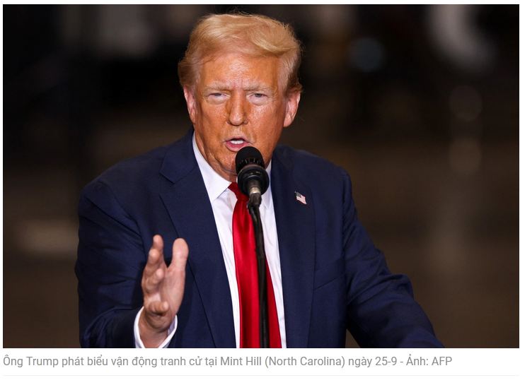 Phát biểu vận động tranh cử tại thị trấn Mint Hill (bang North Carolina), ứng viên tổng thống Đảng Cộng hòa Donald Trump cho rằng:
