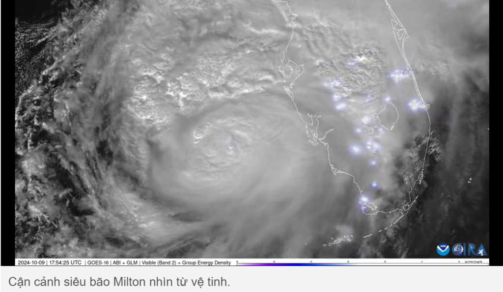 Mưa lớn, gió mạnh và một trận lốc xoáy dữ dội đang diễn ra ở Florida. Theo các nhà khí tượng học, Milton được cảnh báo là một cơn bão mạnh hơn nhiều, với sức gió giật trên 320 km/h và số lượng “sét đánh” chưa từng có.