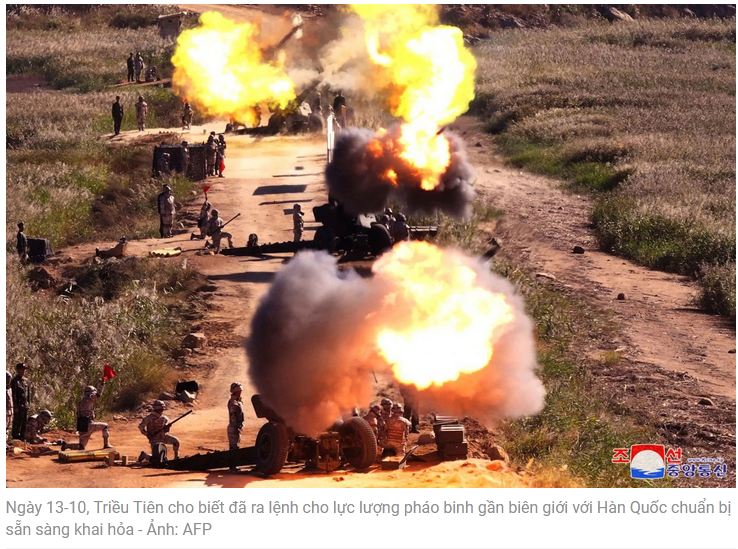 Ngày 13-10, Triều Tiên cho biết đã ra lệnh cho lực lượng pháo binh gần biên giới với Hàn Quốc chuẩn bị sẵn sàng khai hỏa.