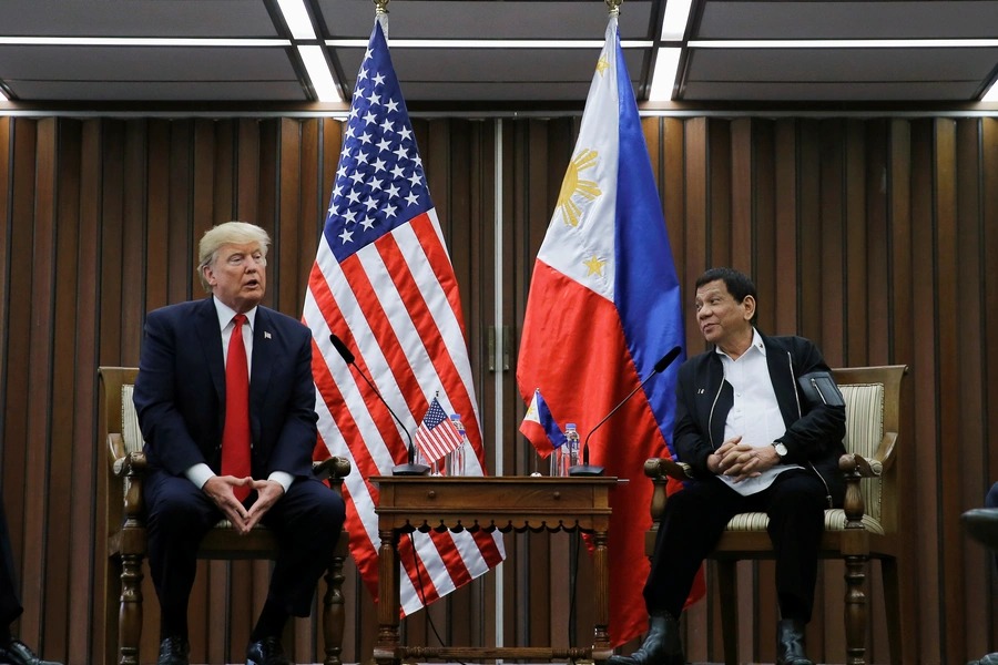 Ông Trump đã đến Manila với tư cách là Tổng tư lệnh Mỹ vào tháng 11/2017. Trong chuyến thăm đó, ông đã tái khẳng định liên minh quốc phòng của Washington với Manila và ủng hộ một “Châu Á-Thái Bình Dương tự do và rộng mở”. Trump cũng đã ca ngợi “mối quan hệ tuyệt vời” của ông với nhà lãnh đạo Philippines khi đó là Rodrigo Duterte. Sau đó, người phát ngôn của Tổng thống Philippines là Harry Roque đã mô tả cuộc gặp của Tổng thống Trump với Duterte là “rất nồng ấm và rất thân thiện”.