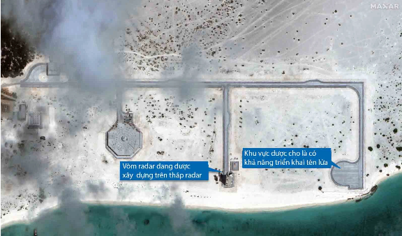 Từ năm 2014, Trung Quốc đã khẩn trương triển khai xây dựng các công trình hạ tầng, như cảng nước sâu, sân bay có thể tiếp nhận máy bay quân sự và tàu chiến; lắp đặt radar và thiết bị giám sát và hệ thống phòng không, tăng cường khả năng giám sát và kiểm soát khu vực…Thậm chí, Trung Quốc đã điều động quân đội và lực lượng vũ trang bao gồm máy bay chiến đấu và máy bay vận tải đến khu vực này…Bằng cách làm đó, Trung Quốc tăng cường khả năng tác chiến và triển khai lực lượng nhanh chóng trong khu vực trong các trường hợp họ xét thấy cần thiết…