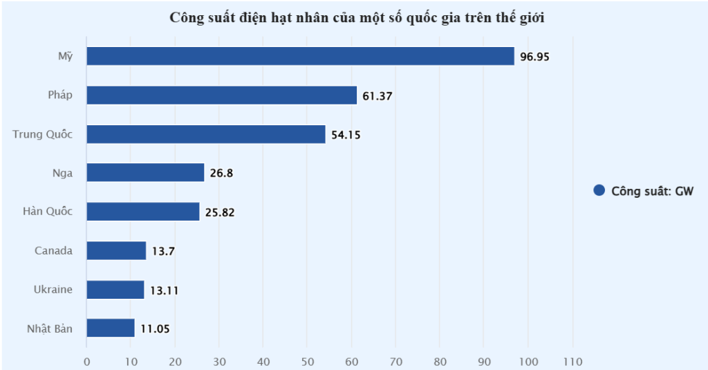 Đặc biệt, Mỹ, Nga, Trung Quốc, Pháp, Nhật Bản, Hàn Quốc còn coi năng lượng hạt nhân là một phần quan trọng trong chiến lược bảo vệ an ninh năng lượng và giảm phát thải khí nhà kính.