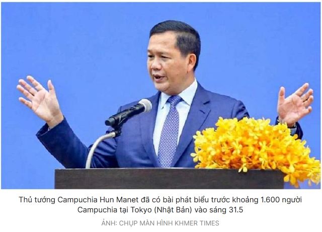Thủ tướng Campuchia Hun Manet đưa ra tuyên bố trên khi phát biểu trước khoảng 1.600 người Campuchia đang sinh sống, làm việc và học tập tại Tokyo (Nhật Bản) vào sáng 31.5, theo Hãng thông tấn AKP của Campuchia.
