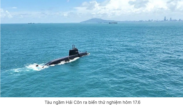 Tàu ngầm Hải Côn đã trải qua các cuộc thử nghiệm tại cảng từ ngày 14-16.6, tập trung vào việc tinh chỉnh hệ thống đẩy của tàu.