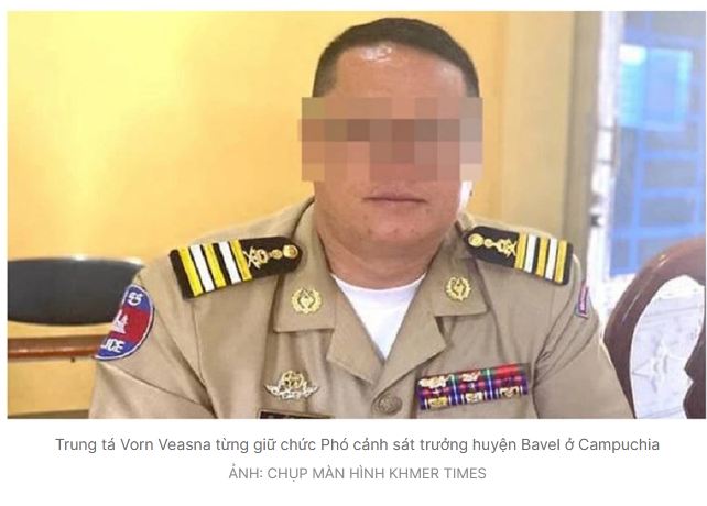 Trung tá Vorn Veasna, cựu Phó cảnh sát trưởng huyện Bavel ở Campuchia, đã nhận hối lộ 774.000 USD từ một người Thái Lan bị cáo buộc đứng sau đường dây lừa đảo trực tuyến, theo Đơn vị Chống tham nhũng của Campuchia.