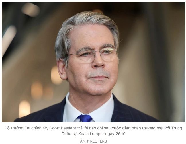 Bộ trưởng Tài chính Mỹ Scott Bessent ngày 26.10 thông báo phái đoàn Mỹ – Trung đã đạt thỏa thuận khung về thuế quan và đất hiếm để lãnh đạo hai nước cân nhắc ký kết khi gặp nhau sắp tới, theo Reuters.