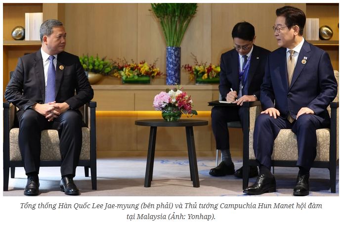 Ông Lee, người đã tham dự Hội nghị Thượng đỉnh ASEAN tại Malaysia, có cuộc hội đàm song phương với Thủ tướng Campuchia bên lề sự kiện đa phương này.