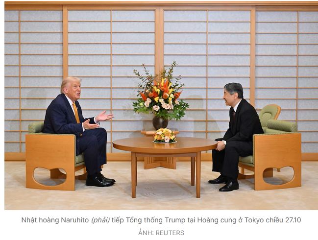 Tại Nhật Bản, bên cạnh việc gặp Nhật hoàng Naruhito, Tổng thống Trump có cuộc gặp với bà Sanae Takaichi, người vừa trở thành nữ Thủ tướng Nhật Bản đầu tiên trong lịch sử. Bà Takaichi được xem là một học trò thân tín của cố Thủ tướng Shinzo Abe – nhà lãnh đạo vốn thân thiết với Tổng thống Trump. Chính vì thế, dưới thời bà Takaichi – vốn theo xu hướng bảo thủ, Nhật Bản nhiều khả năng sẽ siết chặt hơn nữa quan hệ với Mỹ. Ngoài ra, ông Trump được cho là sẽ thúc đẩy cam kết trước đó của Nhật Bản về việc đầu tư khoảng 500 tỉ USD vào Mỹ