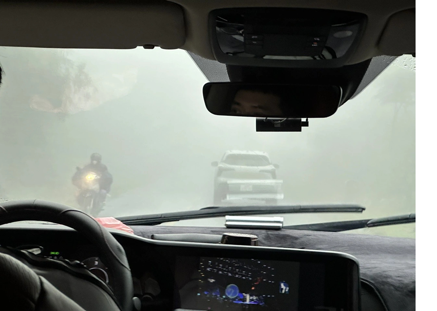 Thực ra không cần lên đỉnh Fansipan mà ngay từ Sa Pa vào khu du lịch Sun World Fansipan Legend, nhiều đoạn đèo sương mù đặc quánh bao phủ khiến chúng tôi thót tim dù bác tài đã trấn an: “Chỉ cần nhìn vào tim đường mà đi, không sao cả!”.