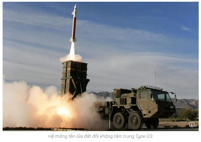 Hệ thống phòng không di động đặt trên xe tải có tầm bắn 50 km. Với khả năng dẫn đường bằng radar, Type 03 có thể bắn hạ máy bay và tên lửa hành trình.