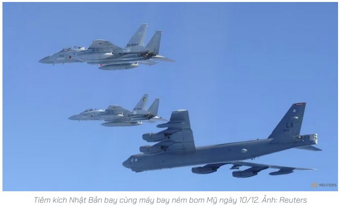 Tokyo cho biết các máy bay ném bom có thể mang vũ khí hạt nhân của Mỹ vừa cùng nhóm tiêm kích Nhật Bản bay trên biển Nhật Bản. Hoạt động diễn ra sau cuộc diễn tập chung của lực lượng Trung Quốc và Nga trên vùng biển và vùng trời quanh Nhật Bản và Hàn Quốc.