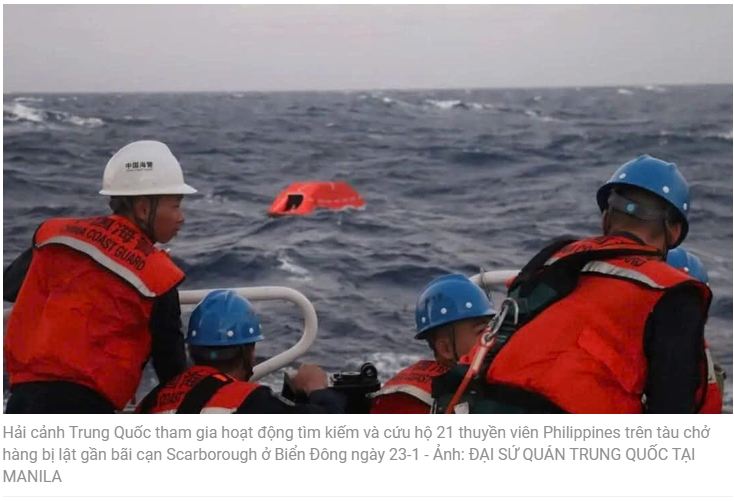 Theo Hãng tin Reuters, ngày 23-1, Trung Quốc và Philippines thông báo họ đã triển khai các hoạt động cứu hộ sau khi nhận được thông tin một tàu chở hàng gặp nạn gần bãi cạn Scarborough ở Biển Đông. Con tàu chở 21 thuyền viên người Philippines.