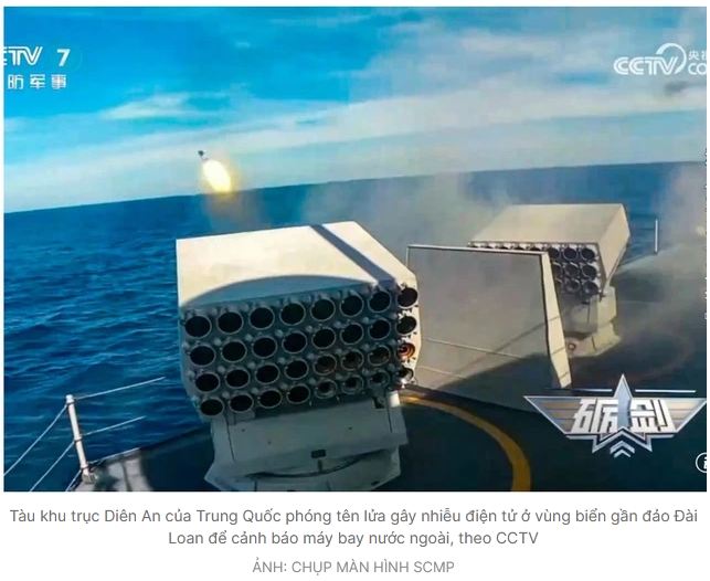 Đây là lần đầu tiên tàu Diên An được chiếu cảnh sử dụng biện pháp đối phó điện tử ở vùng biển gần đảo Đài Loan để cảnh báo máy bay nước ngoài, theo CCTV.