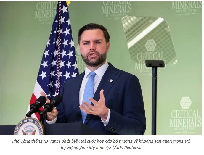 Trong bài phát biểu tại hội nghị về các khoáng sản quan trọng ở Bộ Ngoại giao ngày 4/2 giờ địa phương, do Ngoại trưởng Marco Rubio chủ trì với các quan chức từ hàng chục quốc gia châu Âu, châu Á và châu Phi, Phó Tổng thống Mỹ JD Vance cho rằng, căng thẳng thương mại Mỹ – Trung trong năm qua đã phơi bày sự phụ thuộc của hầu hết các quốc gia vào các khoáng sản thiết yếu mà Bắc Kinh phần lớn đang thống trị.