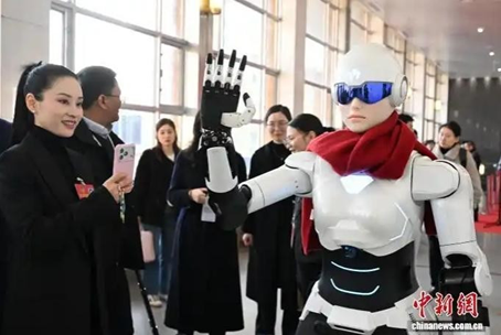 Tại Hà Nam, robot hình người “Hành Giả Số 2” do doanh nghiệp địa phương nghiên cứu phát triển lần đầu ra mắt tại Lưỡng hội, thực hiện “đối thoại người và robot” với các đại biểu.