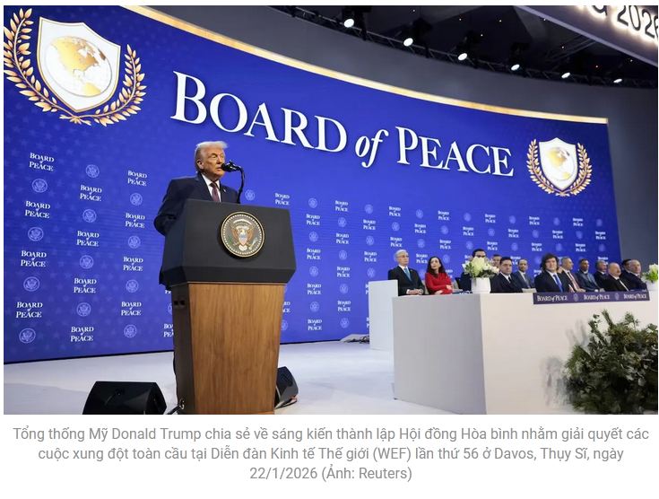 Trước đó, ngày 23/1 tại Davos, Thụy Sĩ, Tổng thống Trump đã ký các văn kiện thành lập Hội đồng Hòa bình. Việc thành lập hội đồng này được Hội đồng Bảo an Liên hợp quốc ủng hộ thông qua một nghị quyết, trong khuôn khổ kế hoạch Gaza do ông Trump đề xuất.